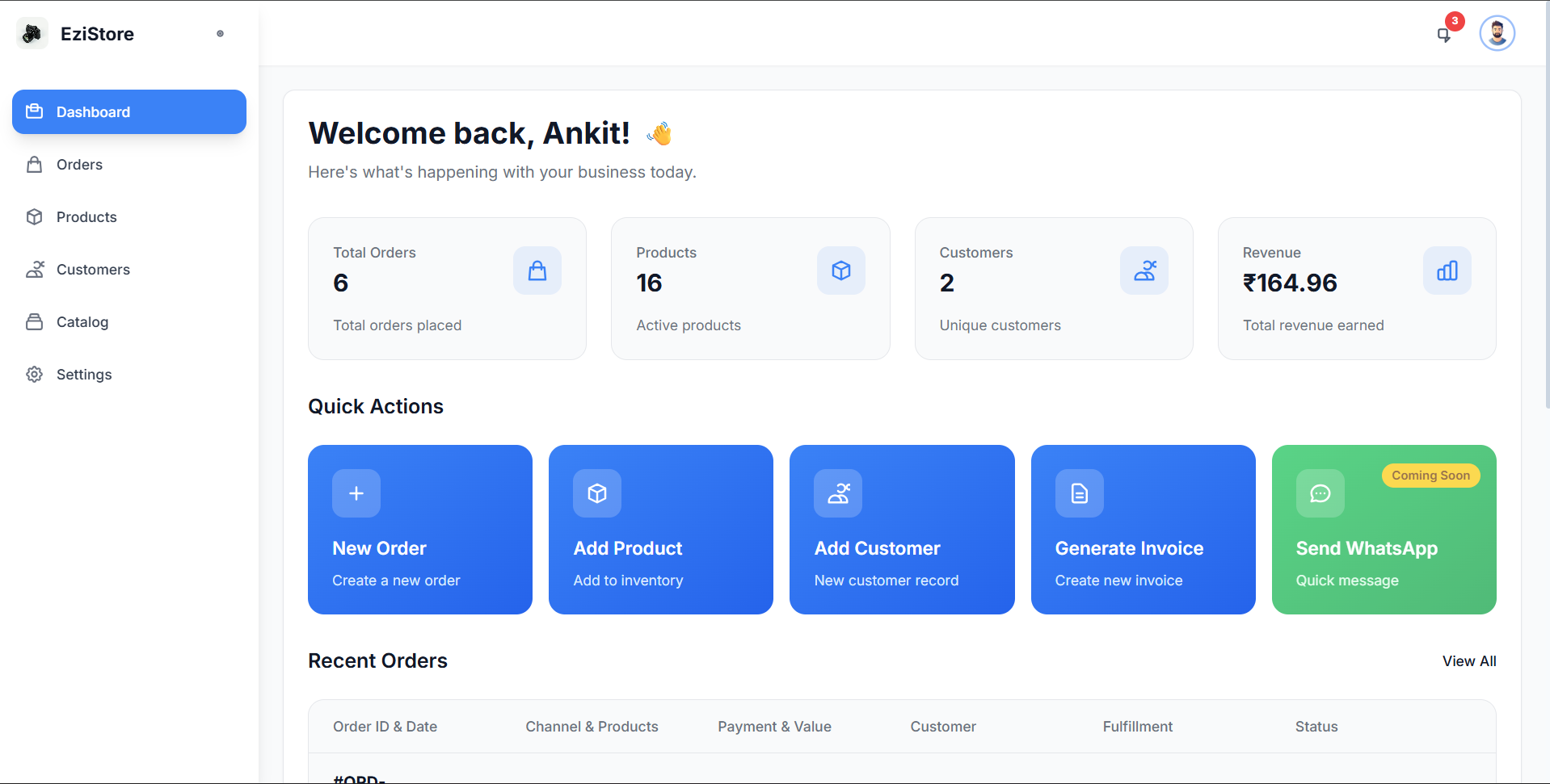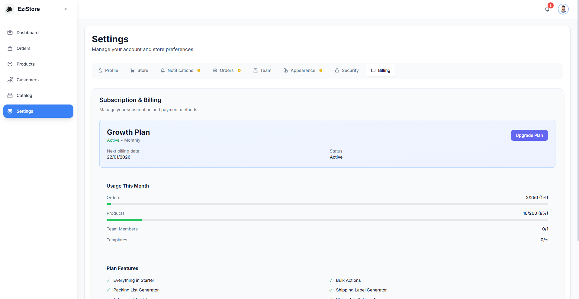 After signing up, you'll be guided through a quick onboarding process to set up your store and familiarize yourself with EziSeller's features.