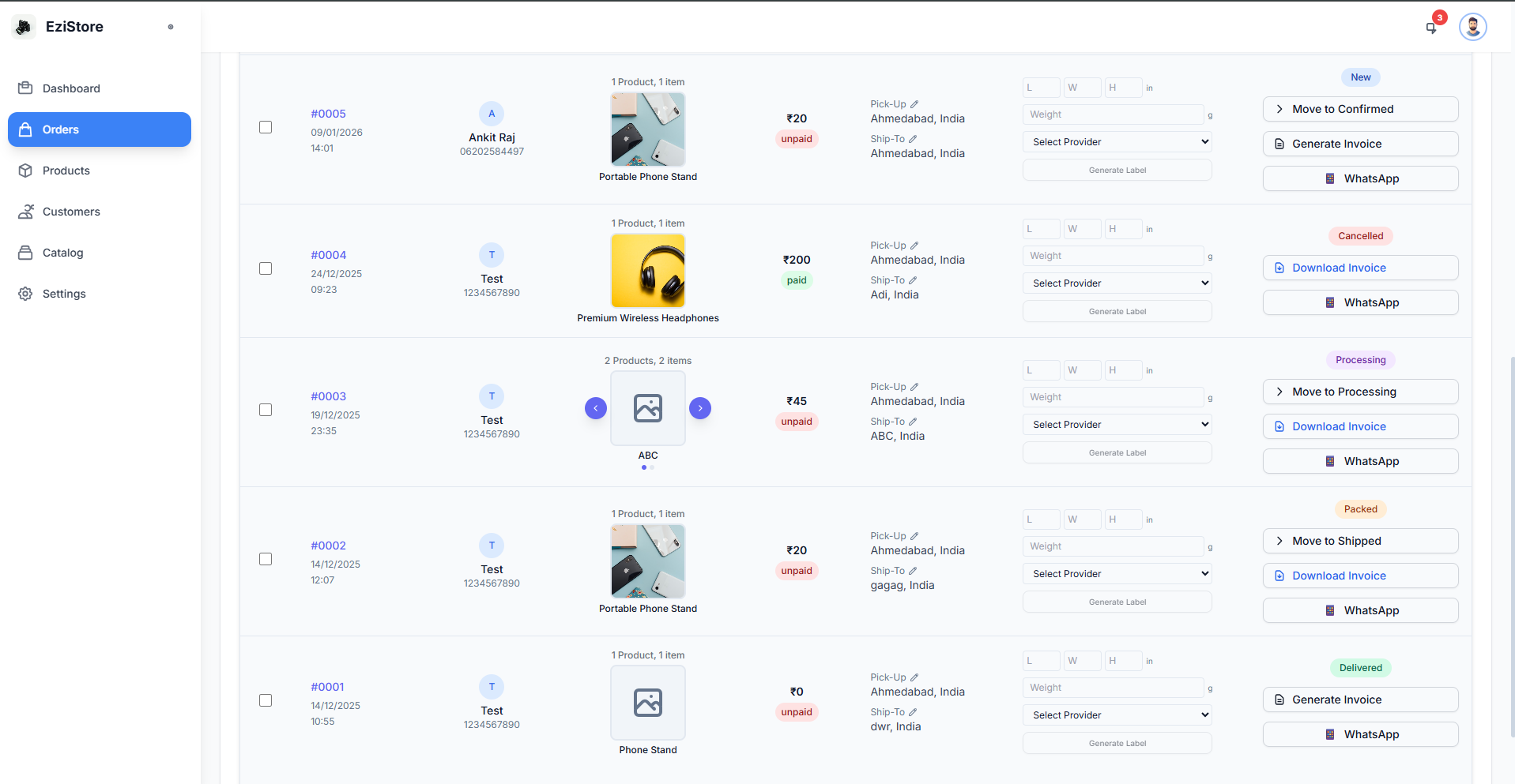 Add and manage your product catalog efficiently. EziSeller makes it easy to organize your inventory.