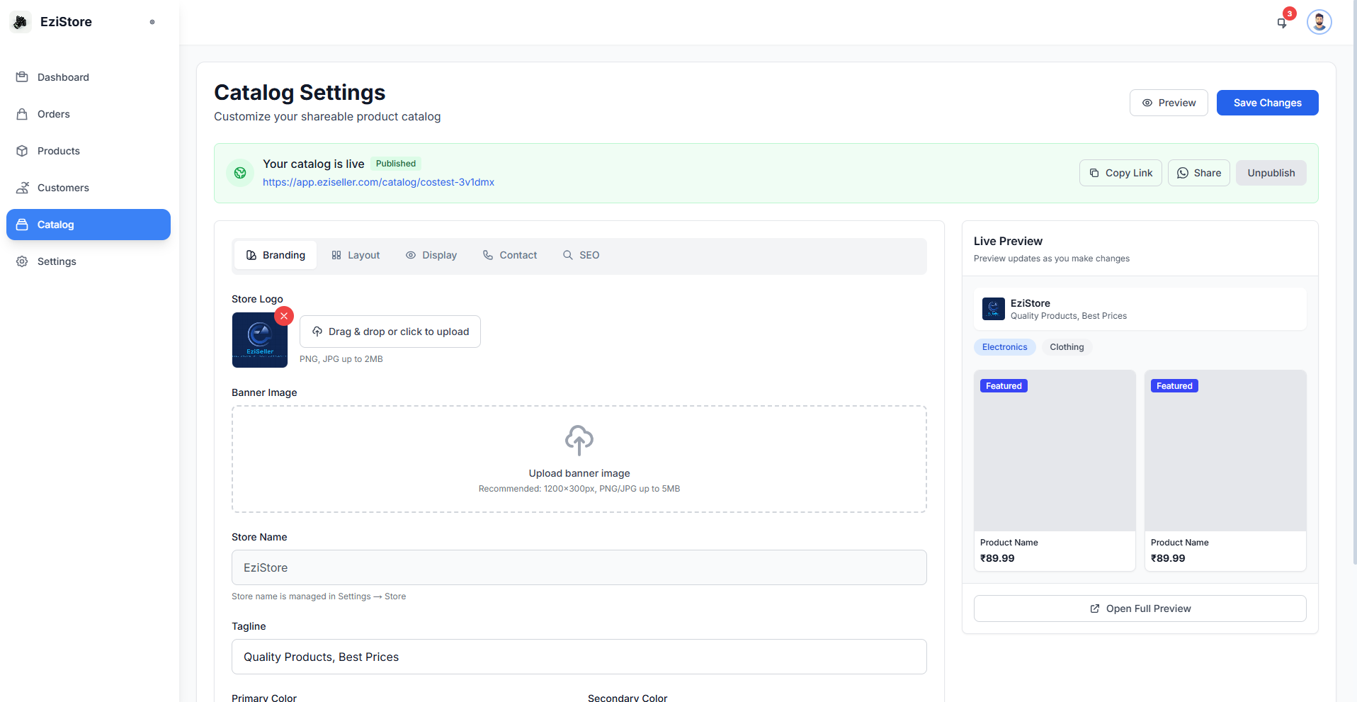 The Catalog feature is your personal product showcase on the web - similar to WhatsApp Business Catalog but with more power and flexibility!
